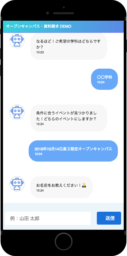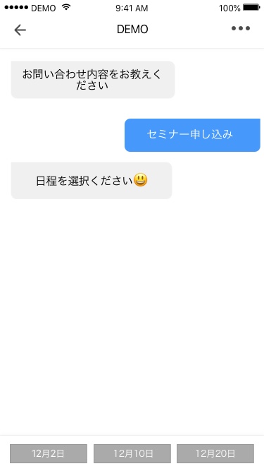 申し込みやお問い合わせをチャットで手軽に行なえます。完全自動対応で貴社の意図した動線で目標を達成します。