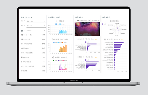 カメラに映った人物の数、年齢・性別、ファッションやその行動をリアルタイムにAIで画像解析・分析します。